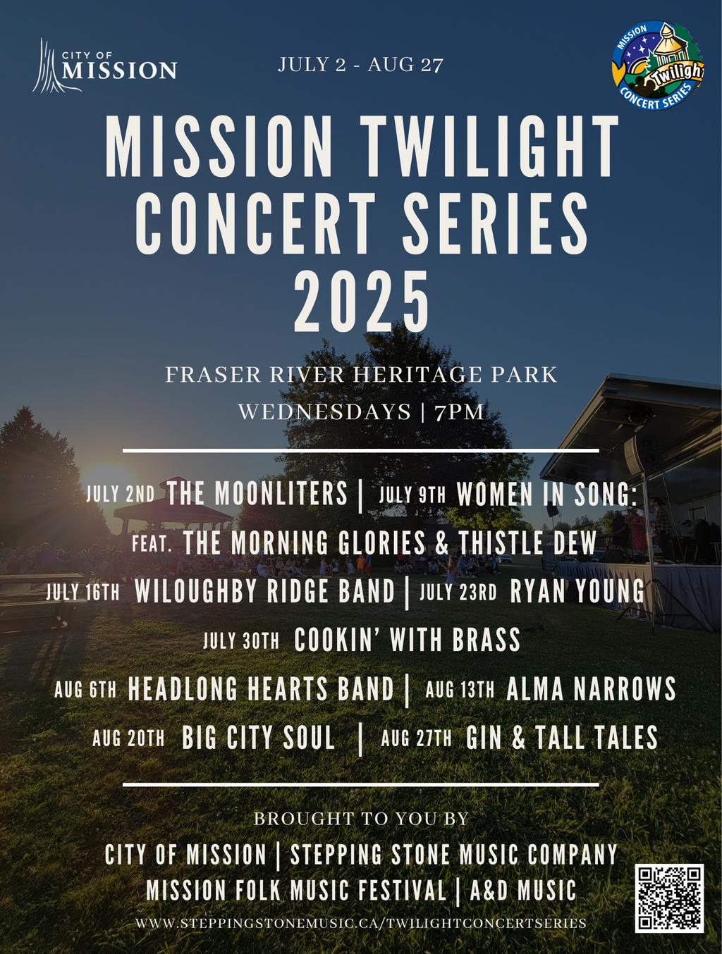 These evenings have been brought to you by the City of Mission, Stepping Stone Music Co. and A&D Sound and Stage productions. Sponsors include What’s On Magazine and the Mission Folk Music Festival